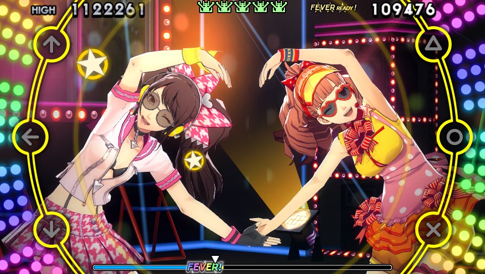 The actual dancing is the star of Persona 4: Dancing All Night, and it largely makes up for the uneven narrative. Each dance/song features a series of inputs on the left and right sides of the screen that correspond to the D-pad and triangle, circle, and X buttons respectively. Occasionally the game will throw rings at the screen as well, which require a flick of the analog stick. Though the rings don't affect combos, fever rings allow players to enter fever mode where scores go up exponentially and other characters join in on the dance. The group dances are incentive enough, as Nanako teaming up with her “big bro” for a dance might be the most adorable video game moment of 2015.
