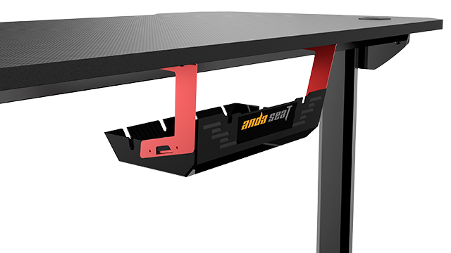 The cable management holes and tray work well enough at hiding the many cables that drop down from a gamer’s desk, with my monitor, PC, microphone, speakers, mouse, keyboard, and headphone wires all being tidily tucked away. The desktop’s “carbon fiber textured” material provides a good non-slip surface that keeps those devices in place.