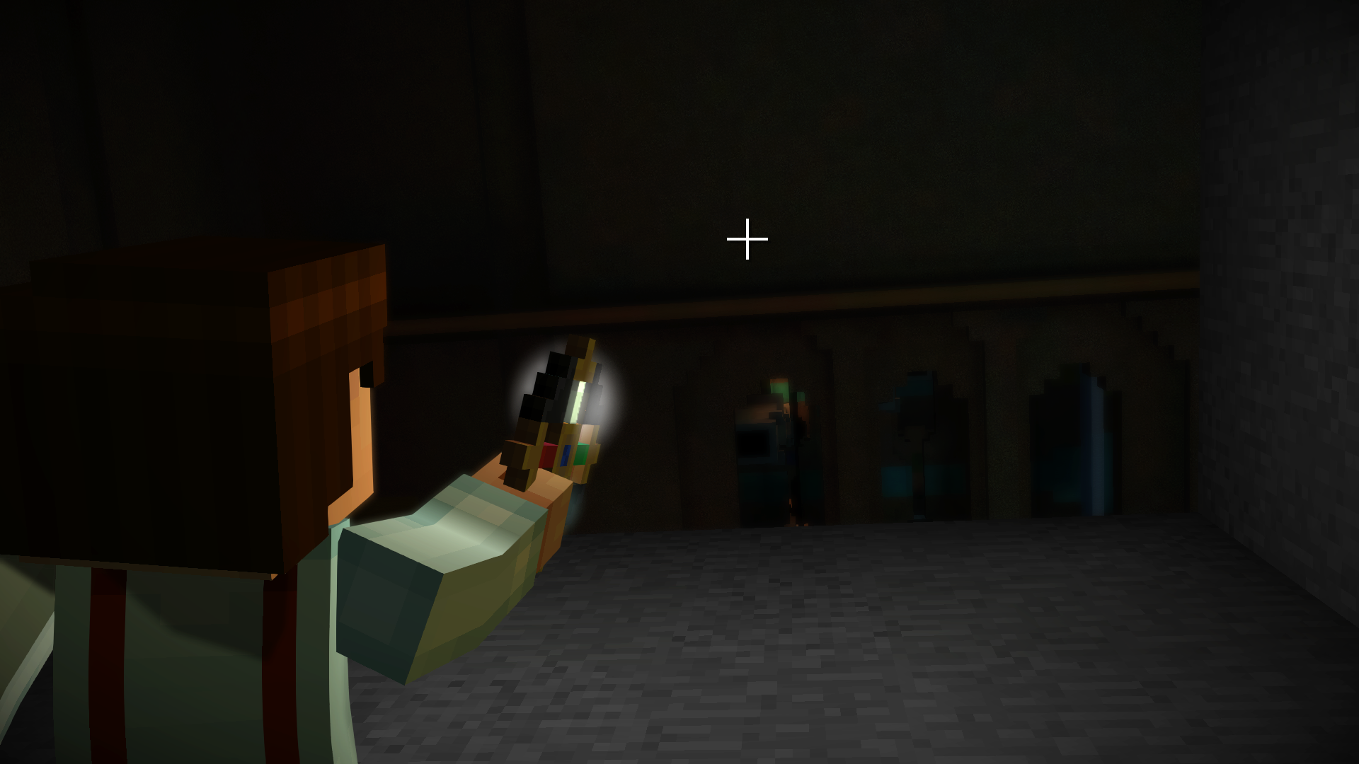 The Enderman are the best baddies in Story Mode so far. Like Mario’s ghosts or the Weeping Angels in Doctor Who, you’re better off not engaging them. Soren even made himself a few Enderman outfits. Naturally, Jesse gets to wear the extra one so he can head out into a field full of Enderman. I’m not gonna say too much more about what happens, but the exchange is illuminating to say the least. (Glitch note: There was a moment where Jesse is still in his black-garbed Endersuit and another character says he should put it back on. Weird.)