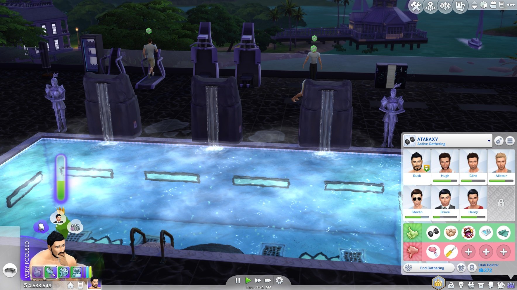 The Sims 4 Get Together, as the name implies, attempts to fix this once and for all. It introduces the concept of clubs, a members-only group that can be rallied together at a gathering to do, well, pretty much anything you can imagine: a Glee club full of high-school students who play instruments, a group of douchebag bachelors tearing through the local nightlife, a fiendish gaggle of supervillains and ne'er-do-wells who prank and cause mayhem with everyone they pass. I settled upon a DC/Marvel-crossover superhero group that included Hawkeye, Superman, and Wolverine who would work out, eat, dance, and mete out justice upon the aforementioned supervillain group.