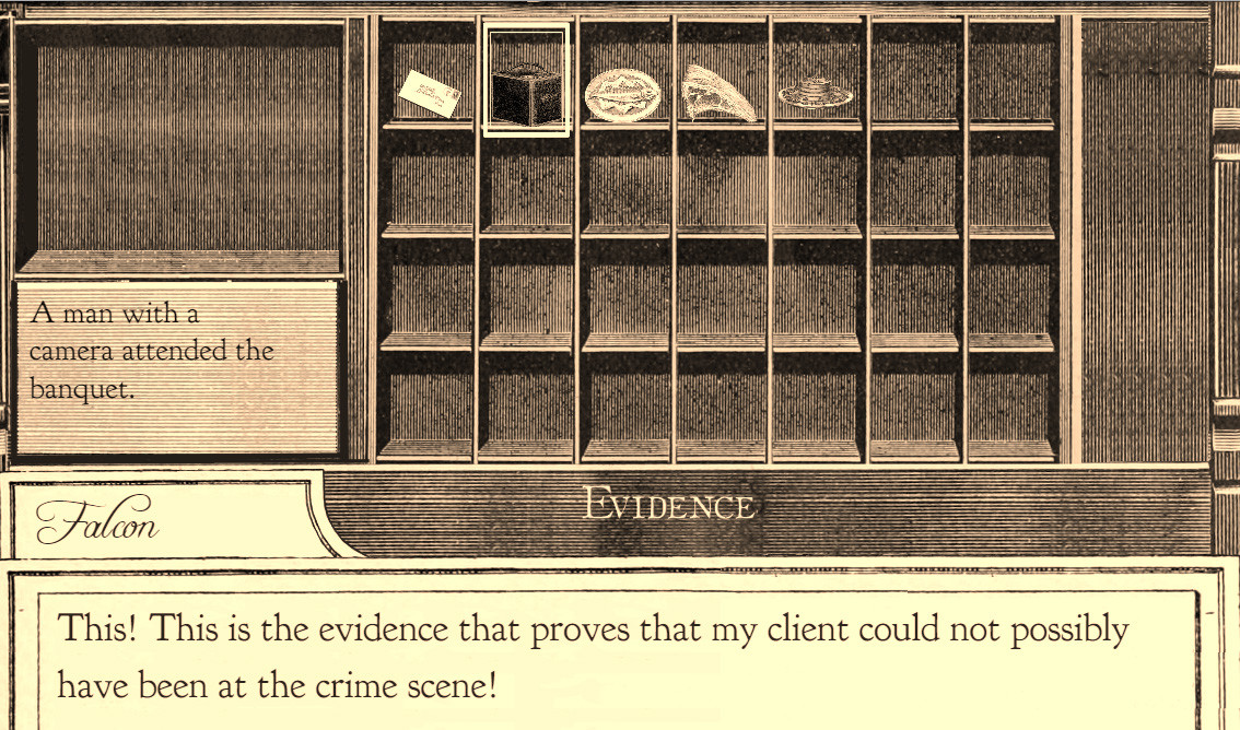 Those who play these type of legal investigation games live for two key parts of the experience: a notable cast of characters, and challenging puzzles. Though the puzzles aren't brainbusters, the way the evidence lines up is not always immediately clear, causing several stumped moments pouring over evidence and wondering if a player visited all the right spots or spoke with all the right people. Without spoiling anything, in one case an innocuous fetch-quest led to a key piece of equipment which became integral in a certain trial. I berated myself for wasting time on the errands until that moment when the prize became, if you'll excuse the appropriate expression, the cock of the walk.