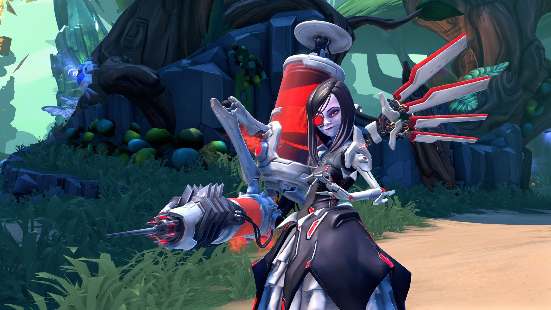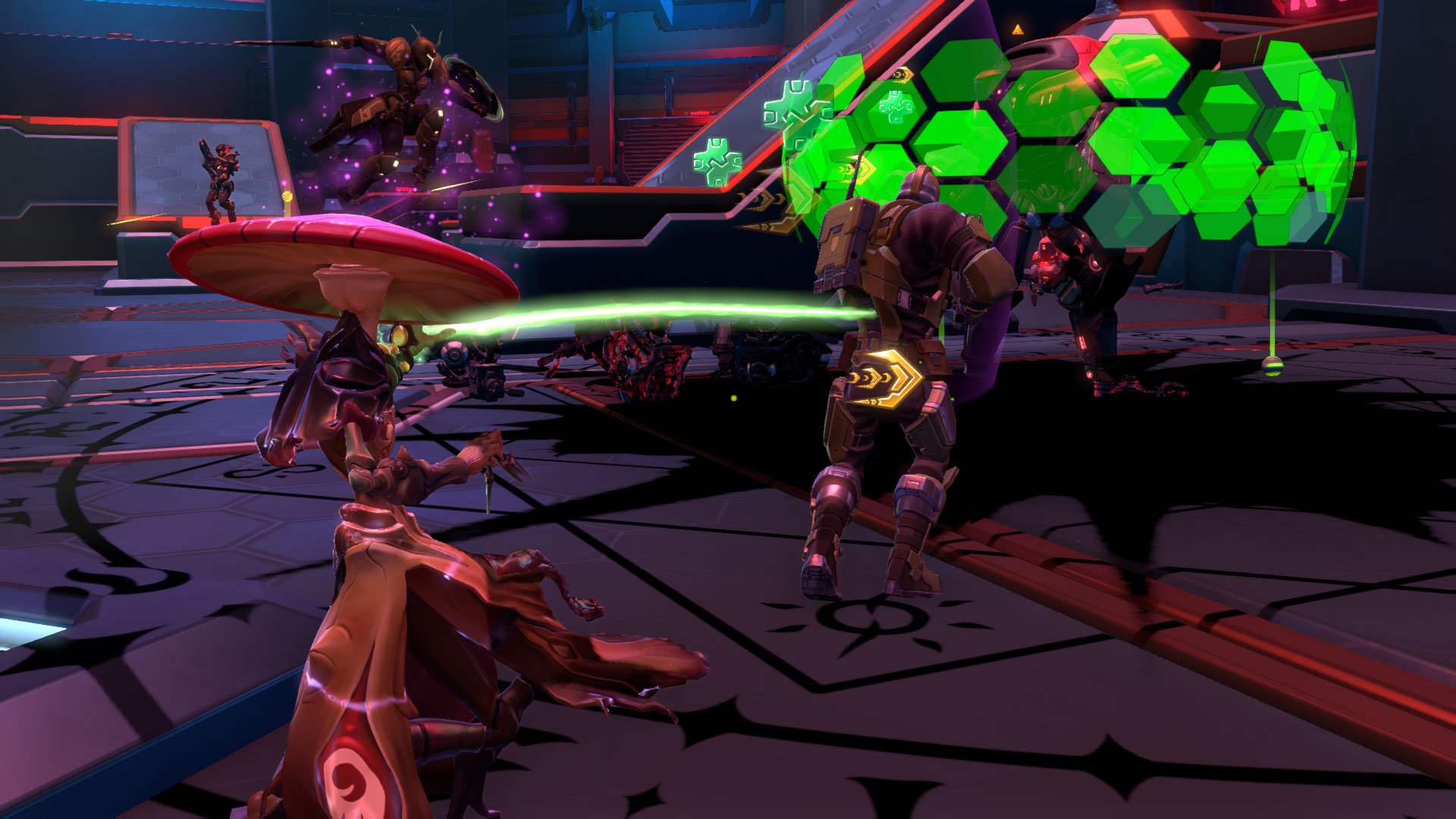 All of these elements become even more significant in Battleborn's three 5v5 multiplayer modes (you can play with bots if you like): Incursion, where you must destroy the enemy team's two sentry bots; Capture, a basic domination-style variant; and Meltdown, a mode where you need to escort minion bots toward a sacrificial pit (for points!). Creating buildables and consistently accumulating shards, which also takes them away from the enemy team, helps as much as defeating neutral Thrall mercenaries and having them temporarily join your team. Like most MOBAs, dying in these matches needs to be prevented as much as possible, especially near the end of the match when respawning can take longer than twenty seconds, so that the enemy team doesn't have a power-play opportunity. Knowing when to teleport back to the base can save your team's bacon even if it wounds your pride a bit.