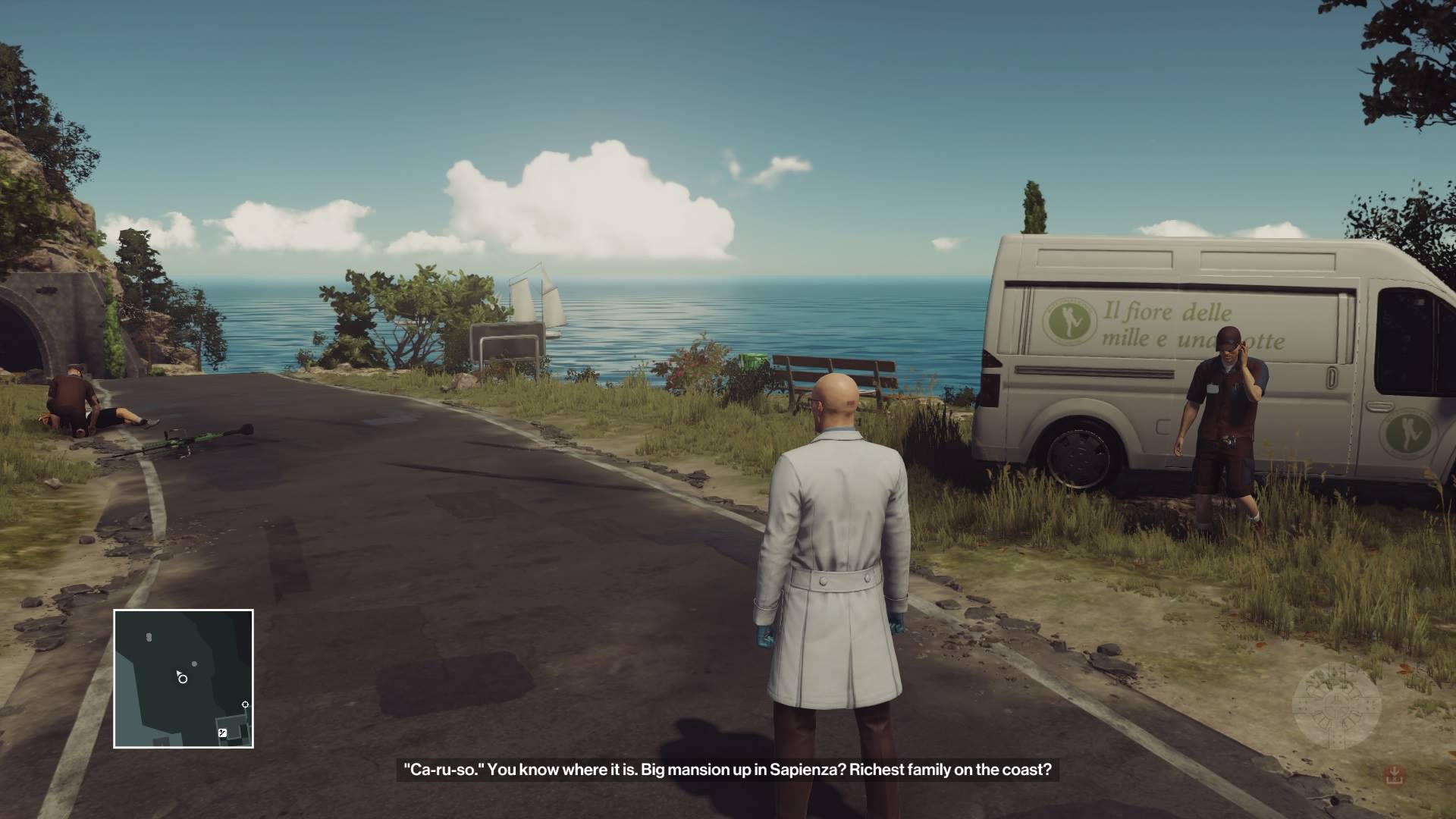 The real star of the episode is Sapienza itself, the environment and characters that inhabit it. Nearly every location has its own characters telling their personal story—even if it's not one that leads to new opportunities, it teaches you about the town and gives background on the hit. The small storylines playing out in the small village are funnier, and the opportunities feel more absurd: If you can find and get inside the ISA safe house, you'll find an exploding golf ball you can use to blow up Caruso. You can also target him or Francesca with cannons at the not-quite-decommissioned fort at the end of his property. Both of these are Assassination challenges that reward you with experience points in the game.