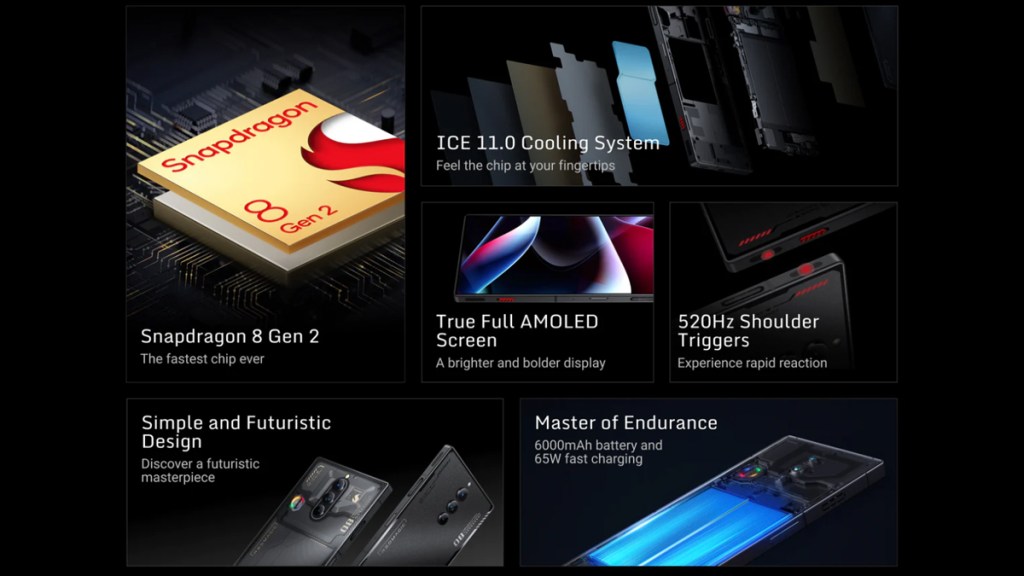 For those unfamiliar with Redmagic, the following list of flagship specs may come at a surprise given the relatively low price. But no, you’re not reading them wrong, the Redmagic 8 Pro does indeed boast: the Snapdragon 8 Gen 2 CPU with Adreno 740 GPU, 12/16 GB RAM, 256/512 GB of storage, a 6.8″ 2480×1116 AMOLED screen running at 120 Hz with 1300 nits of peak brightness, and a 6,000 mAh battery which charges at 65 W (leading to a full recharge time of fewer than 45 minutes).
