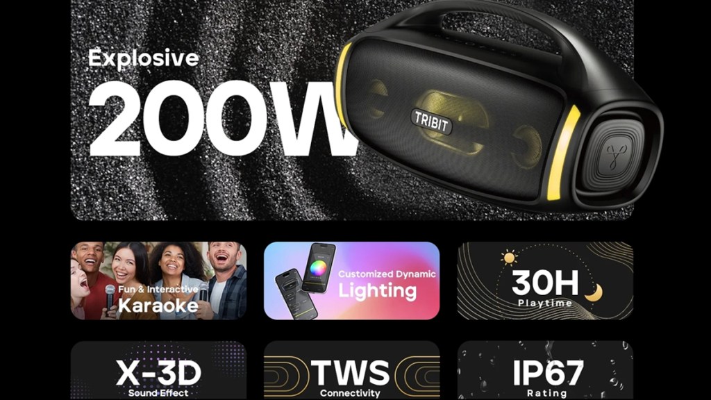 At $299, the TRIBIT StormBox Blast 2 delivers powerful sound, fun party features, and solid durability. With strong bass, long battery life, and waterproofing, it’s built for both indoor and outdoor use. While a bit heavy, its performance makes it a great option for those wanting big sound on the go.