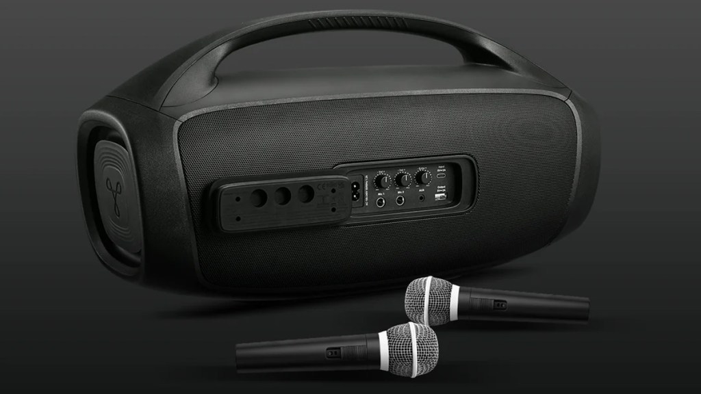 With partying in mind, it’s worth highlighting the karaoke mode, which allows for up to two mics to be connected via the physical inputs or wirelessly. Users can sing along and fine-tune their vocals with reverb effects and other settings.